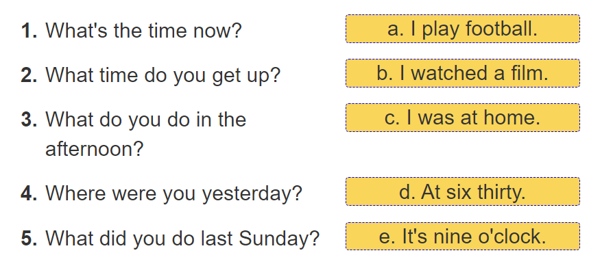 (Bạn làm gì vào buổi chiều? Tớ chơi bóng đá.)