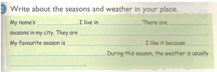 2. Write about the seasons and weather in your place.