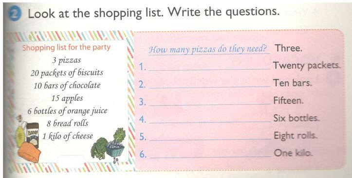 (Xem danh sách mua sắm sau. Viết các câu hỏi)