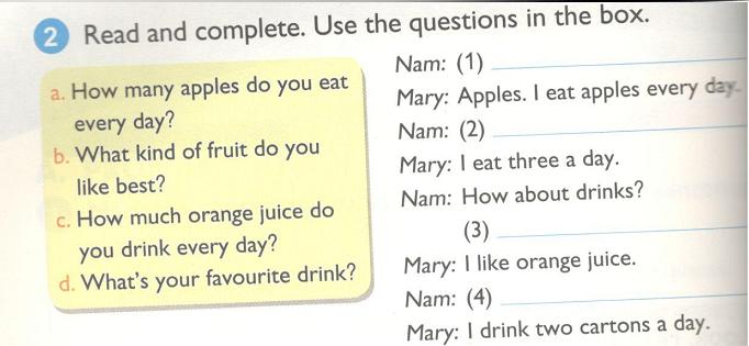 (Đọc và hoàn thành. Sử dụng các câu hỏi trong khung)