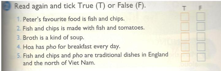(Đọc lại và đánh dấu Đúng (T) hoặc Sai (F)