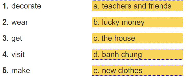 (Nói về những gì bạn làm vào dịp Tết.)