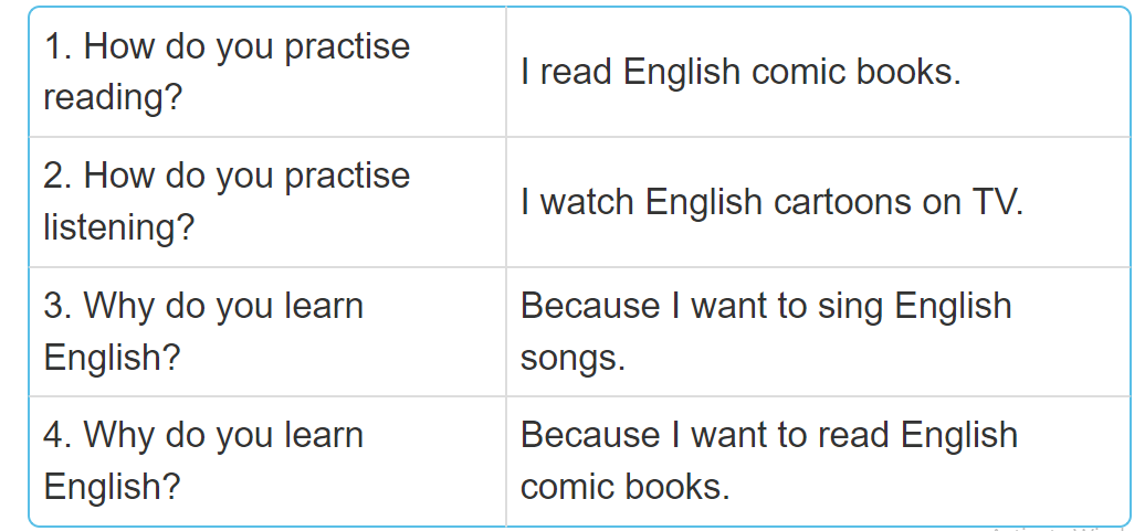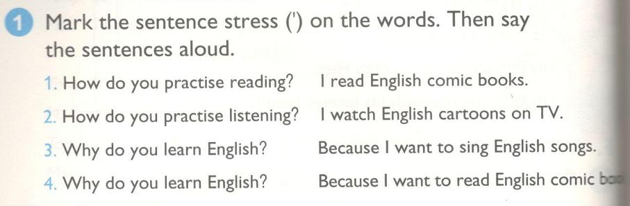 1. ‘How do you ‘practise ‘reading? I ‘read ‘English ‘comic ‘books.