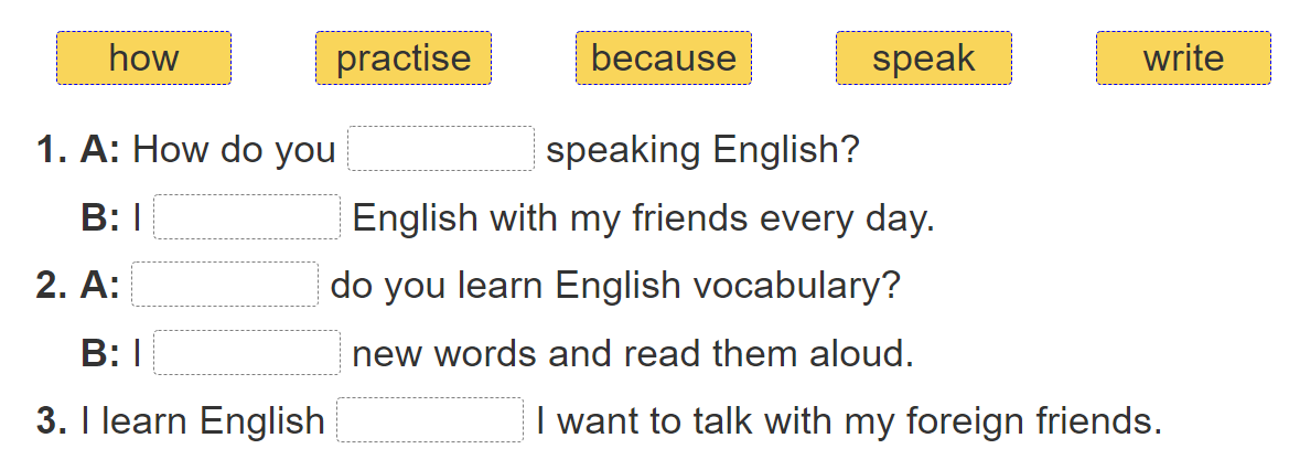 B: Tớ nói Tiếng Anh với những người bạn của tớ hàng ngày.