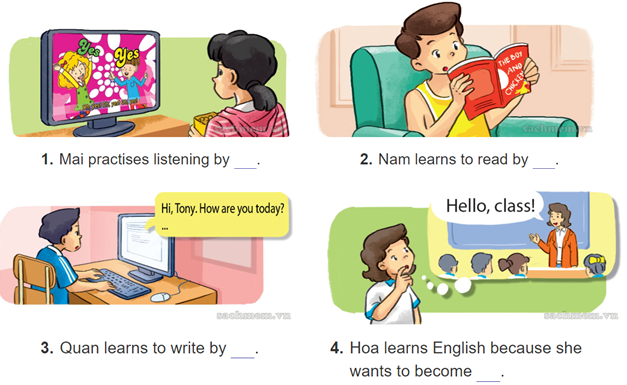 1. Mai practises listening by watching English cartoons trên TV.