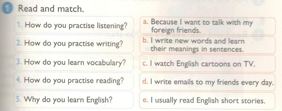 2.‘How do you ‘practise ‘listening? I ‘watch ‘English car’toons on ‘TV.
