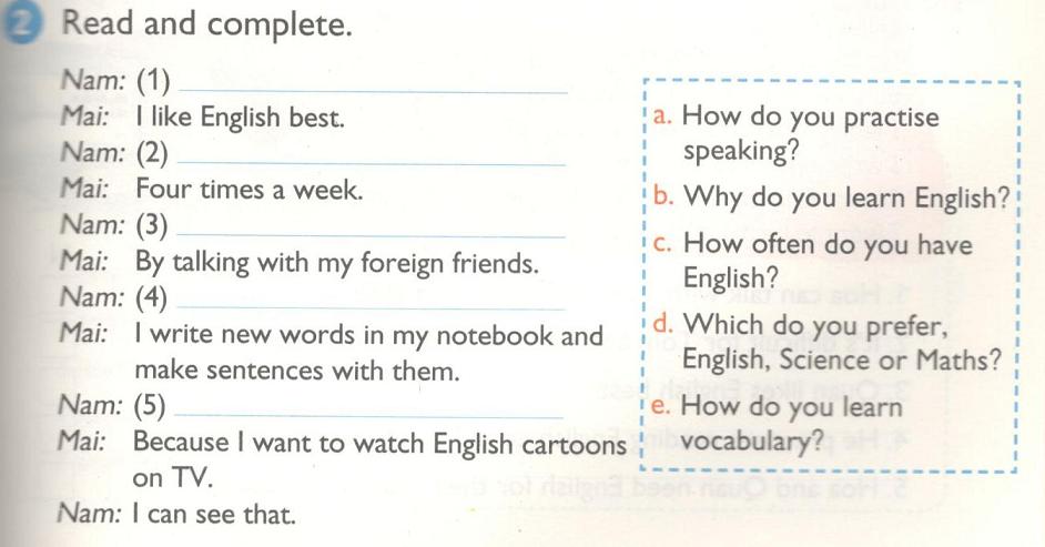 2. Read and complete. (Đọc và hoàn thành)