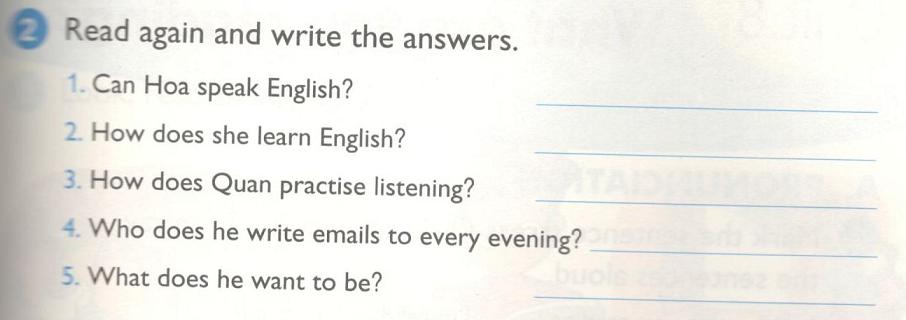 2. Read again and write answers ( Đọc lại và viết câu trả lời)