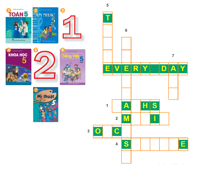 Mai: I have (3) five : English, Maths, Vietnamese, Music and PE.