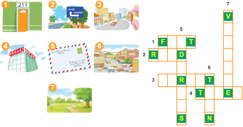 1. address  2. cities   3. floor   4. towers   5. village