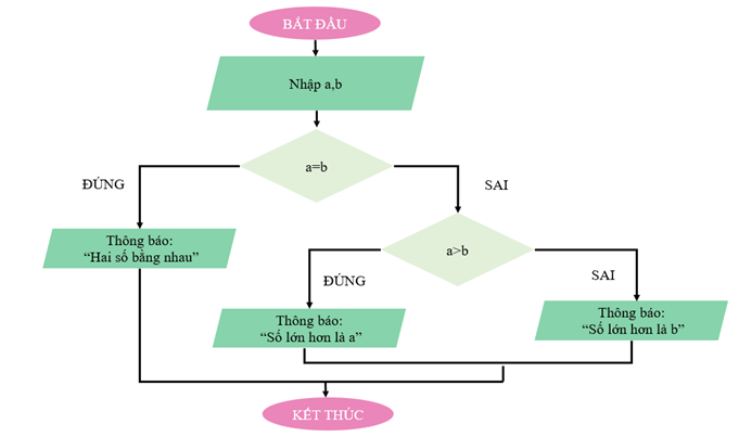 – Sơ đồ khối mô tả thuật toán tìm số lớn hơn trong hai số a và b: