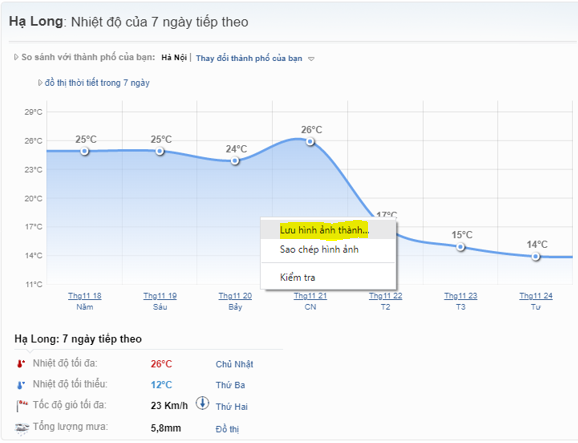 a) Tìm thông tin về thời tiết ở thành phố Hạ Long trong tuần này.