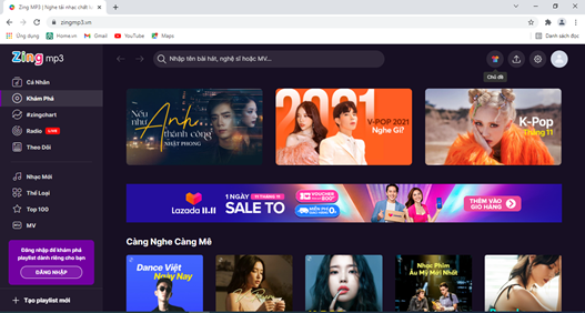 – Ví dụ: Truy cập website https://mp3.zing.vn/