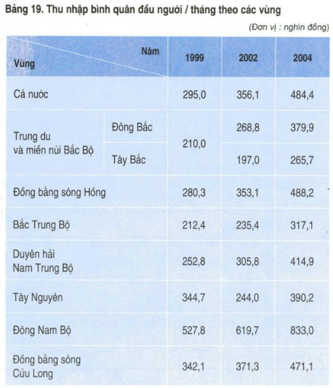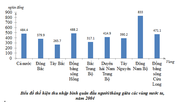 Vẽ biểu đồ thể hiện thu nhập bình quân đầu người/ tháng giữa các vùng nước ta, năm 2004