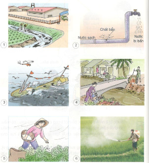 Em hãy quan sát các bức tranh và chỉ ra những hành động mà gây ô nhiễm nước?