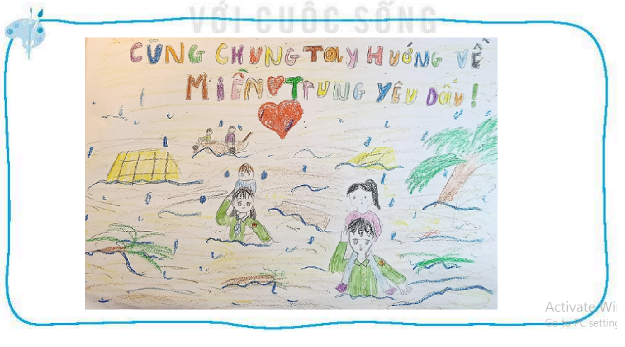 –  Một bạn nhỏ ở miền trung bị bão lũ, bị lũ cuốn trôi hết sách vở.