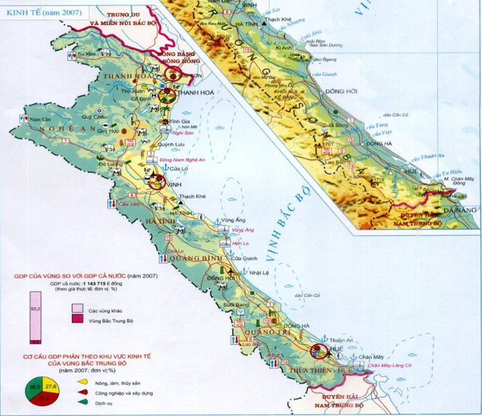 – Huế: cơ khí, sản xuất hàng tiêu dùng, chế biến lương thực thực phẩm.