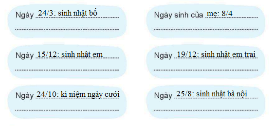 – Cùng bố mẹ xem lịch và đánh dấu vào lịch những ngày đáng nhớ đó.